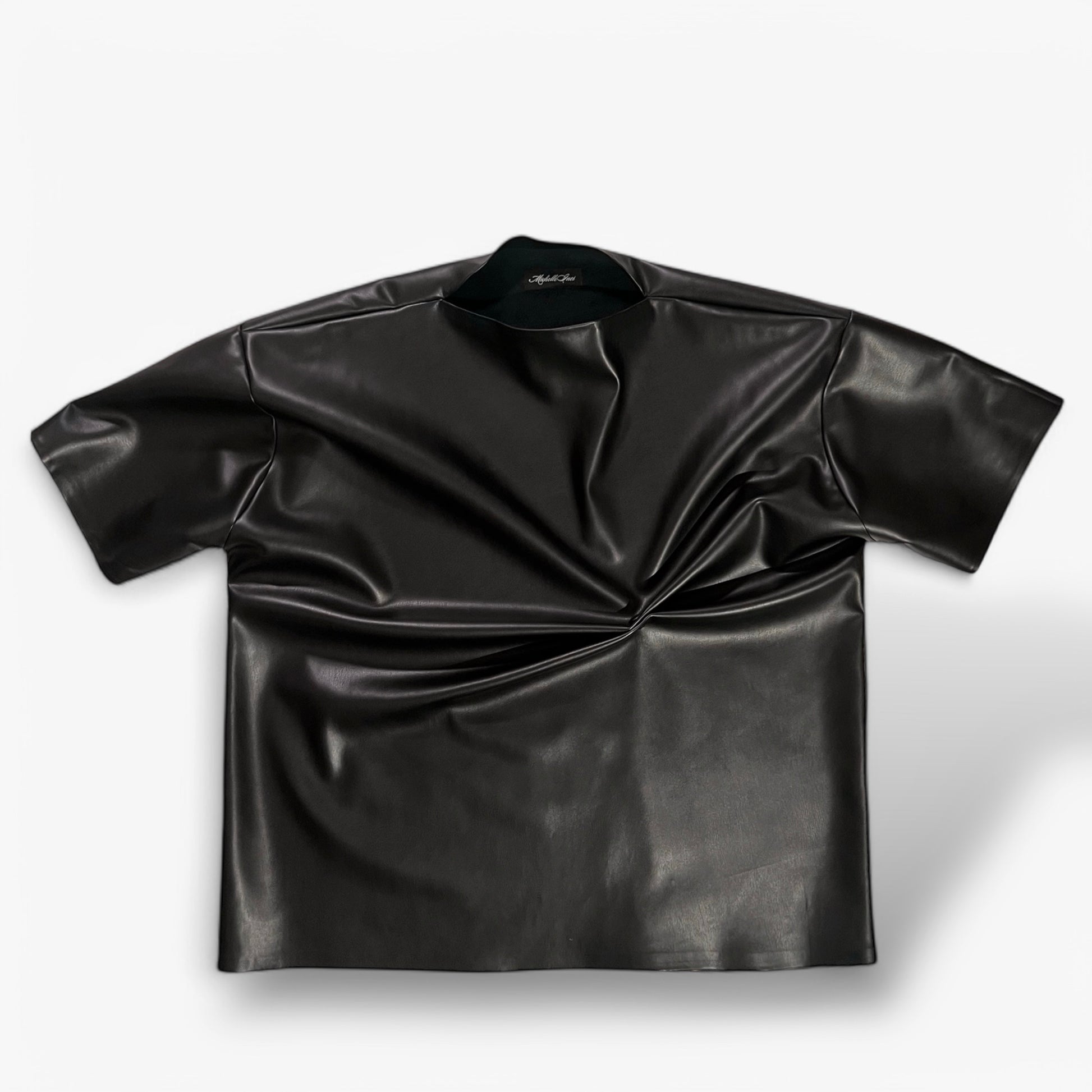 Unisex Oversized Vegan Leder t-shirt mit geradem Kragen ausschnitt.