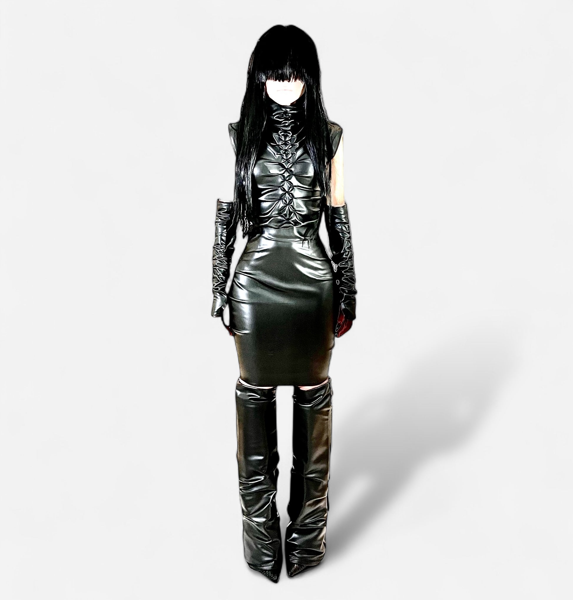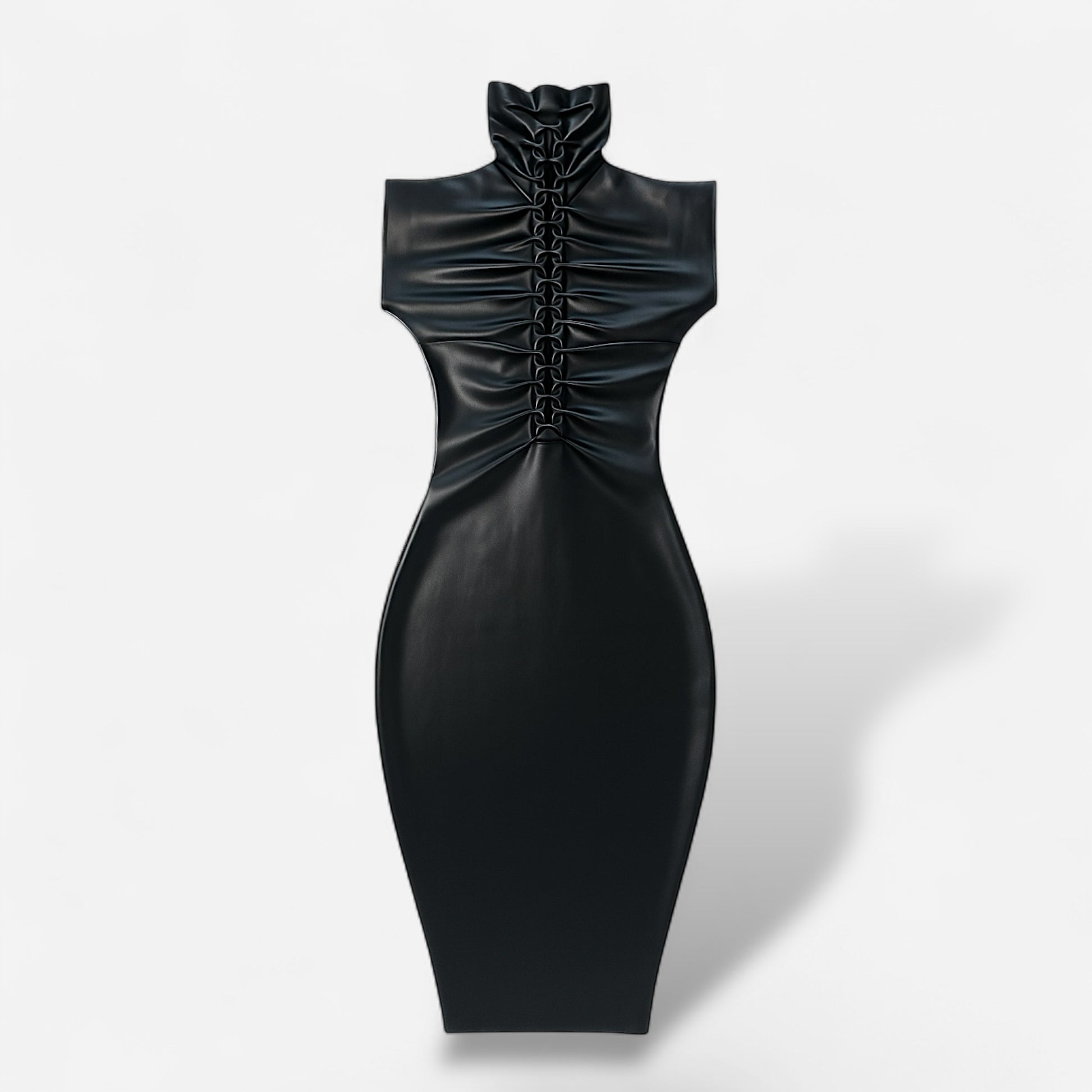 -Schnitt: ärmellos, tailliert, hoher kragen,Midi-länge